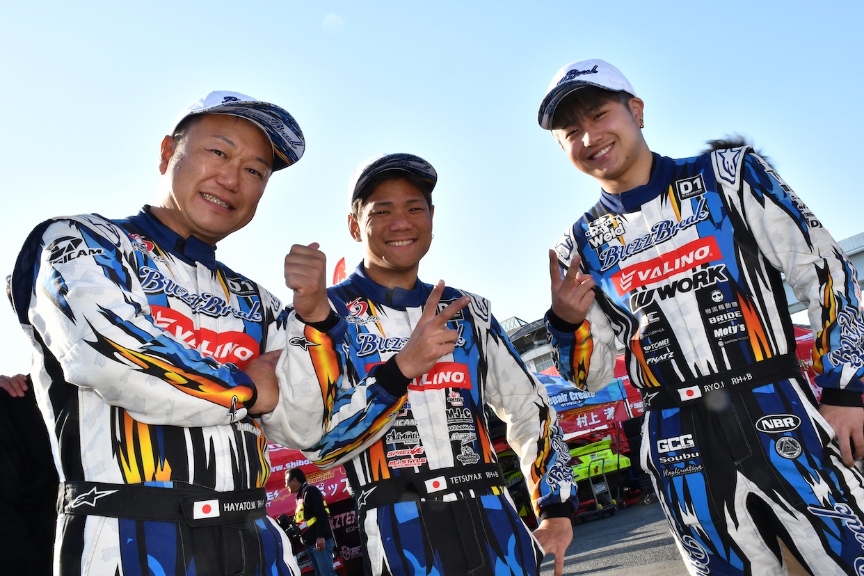 TEAM BUZZBREAK DRIFT 三好隼人選手、粂哲也選手。TEAM BUZZBREAK 石井亮選手の3選手も参戦。